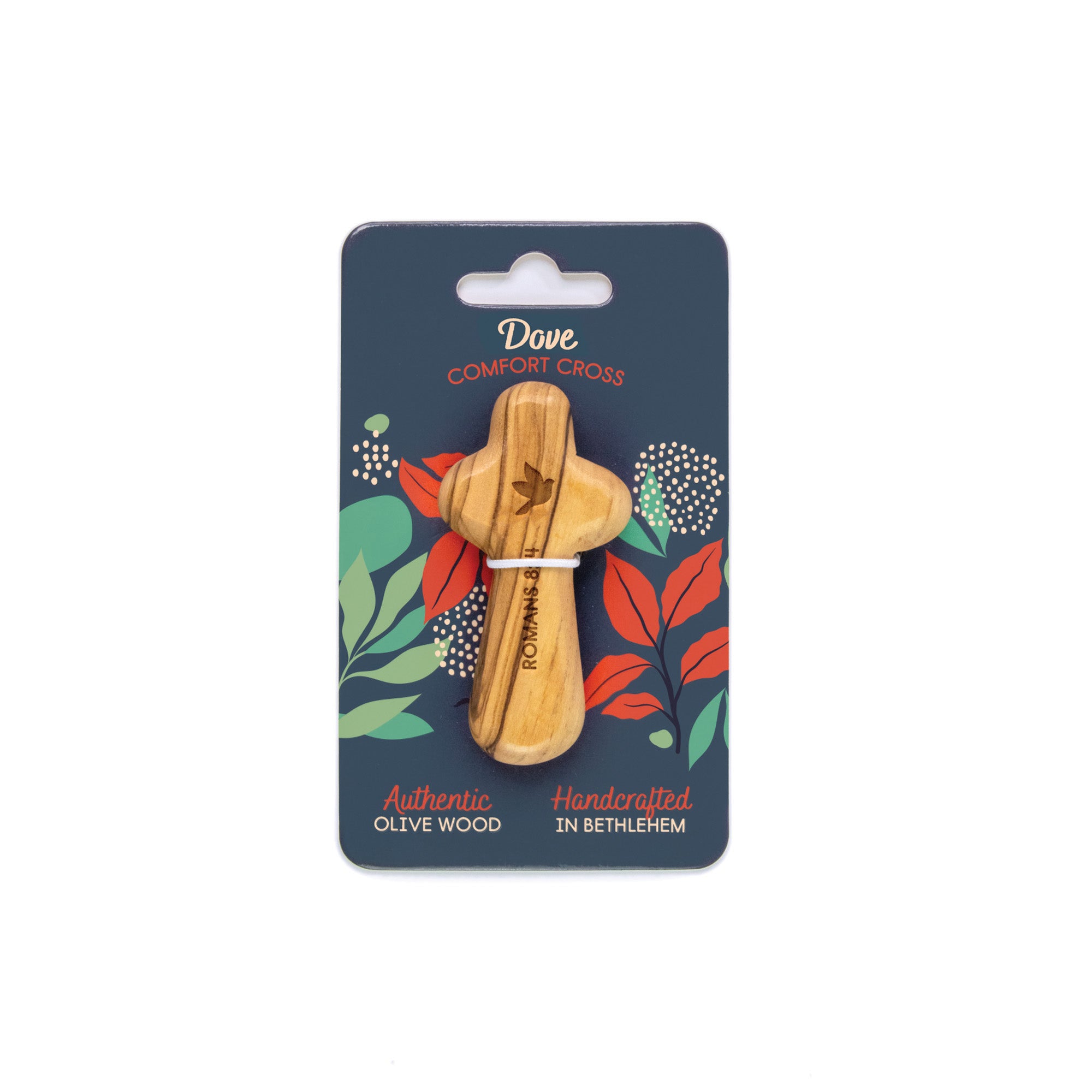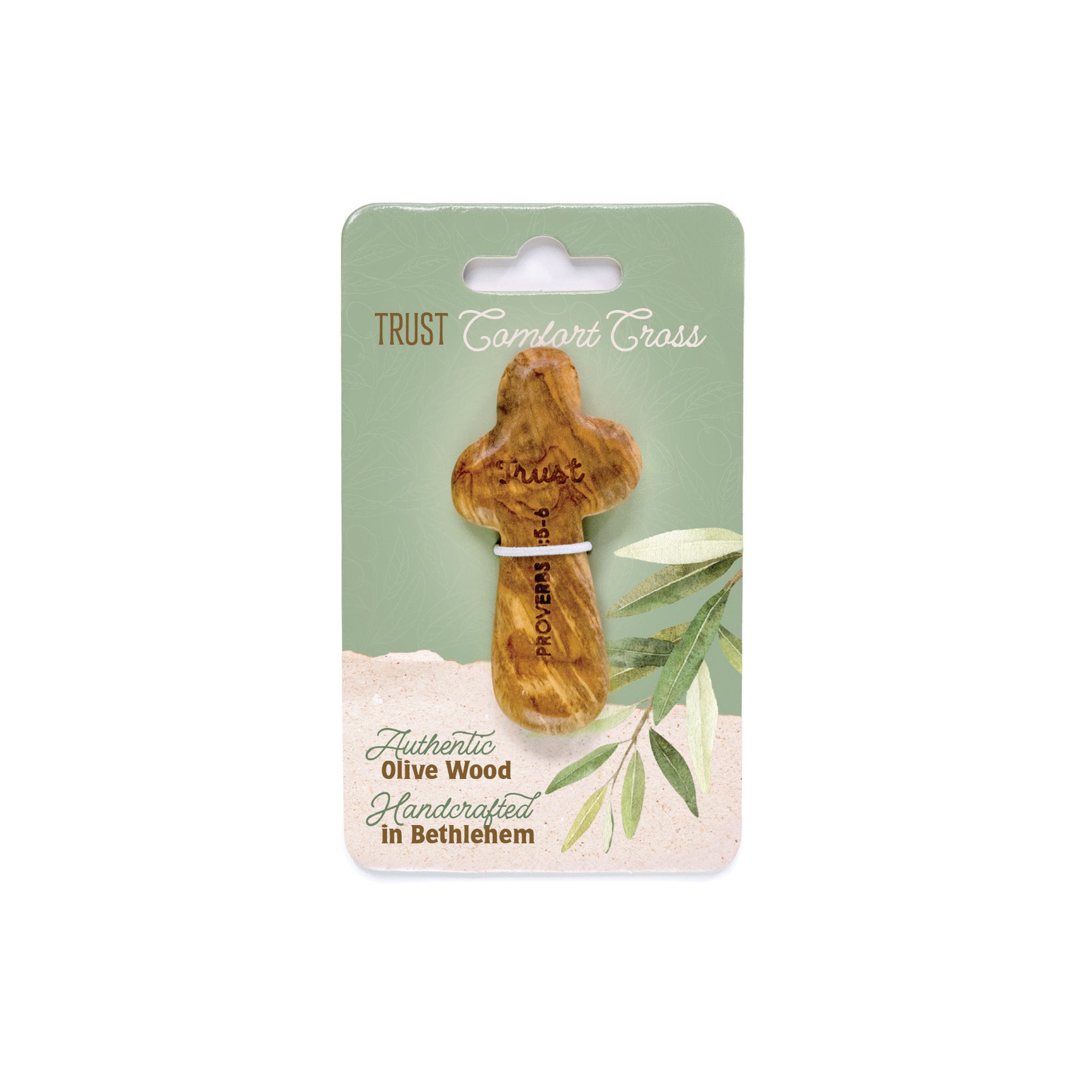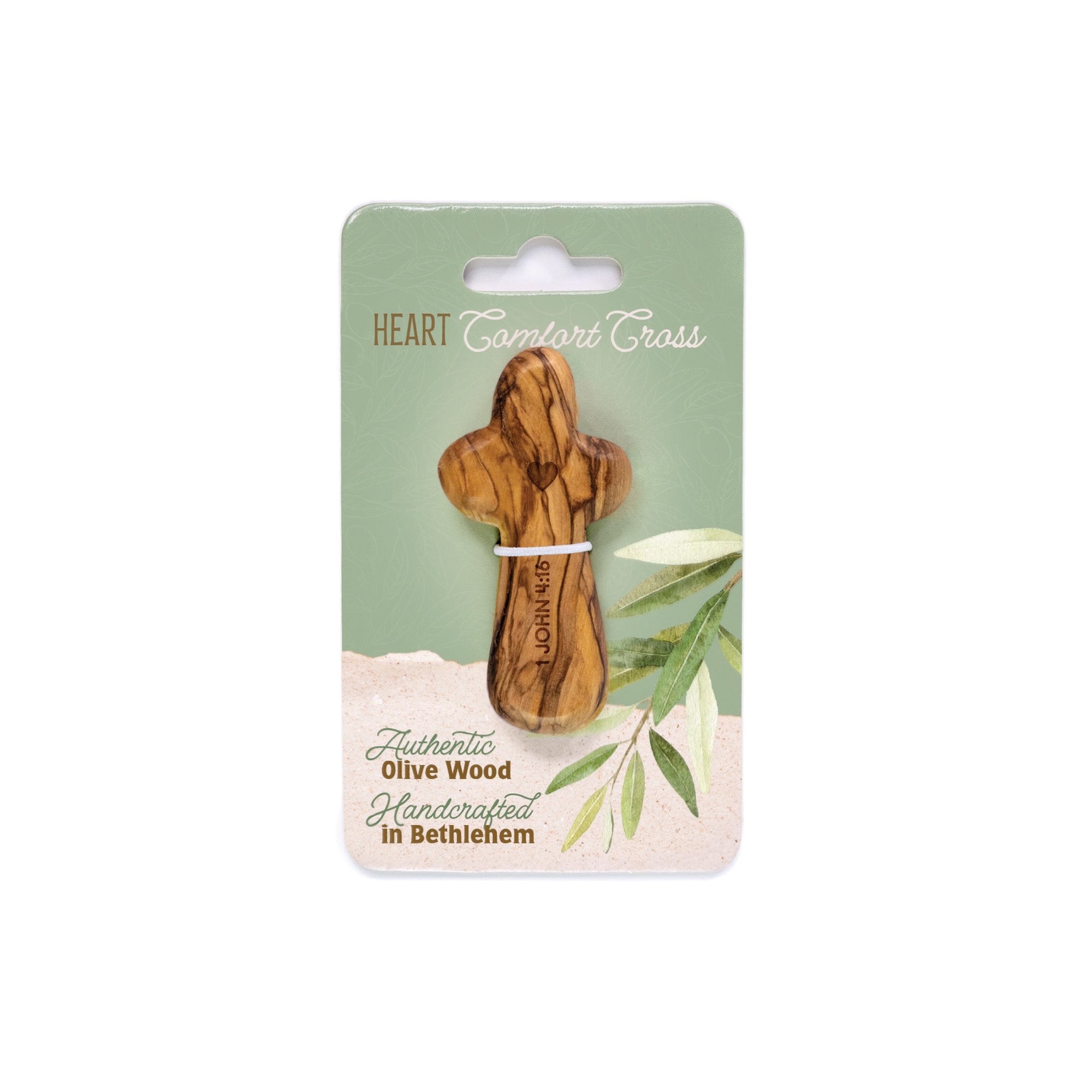 These laser engraved comfort crosses are packaged on a heavy card stock, hangable, full-color backer card. Due to the natural variations in olive wood and the beads, each bracelet is unique.